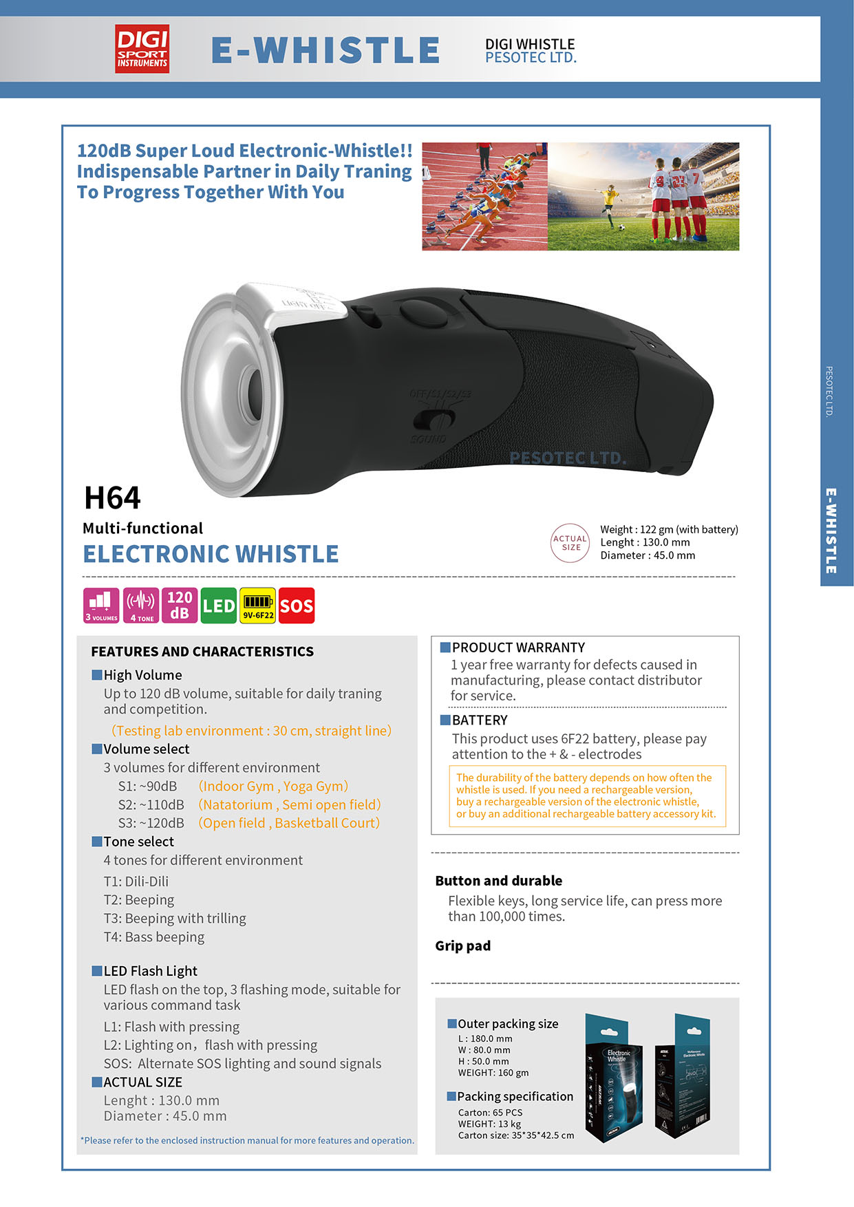 110 db sound level, suitable for all trainings andraces.